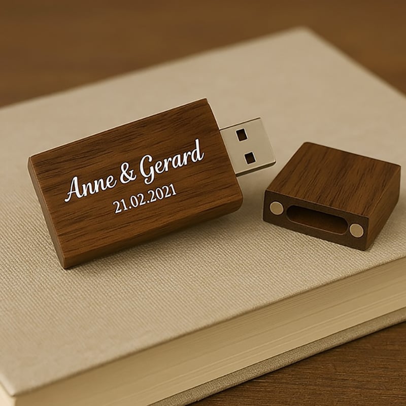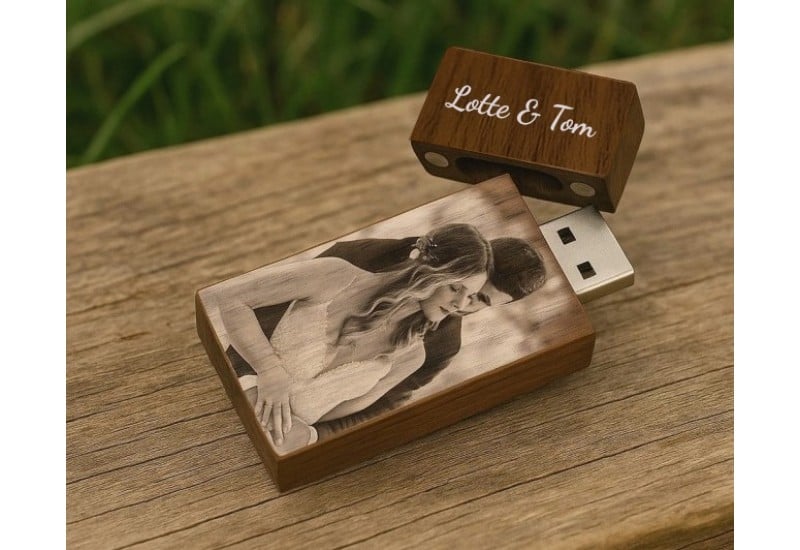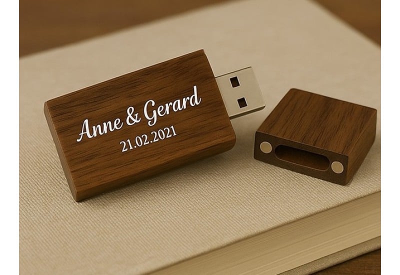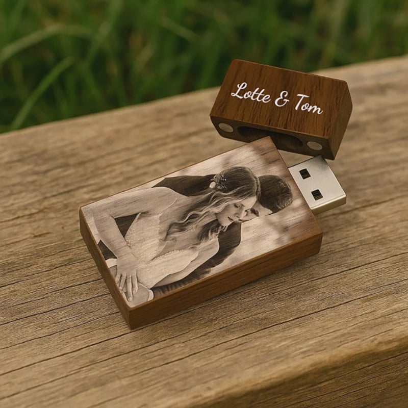 Tags: rechthoek hout usb stick bedrukken, foto, naam, 8gb, wedding, huwelijk, trouwen,